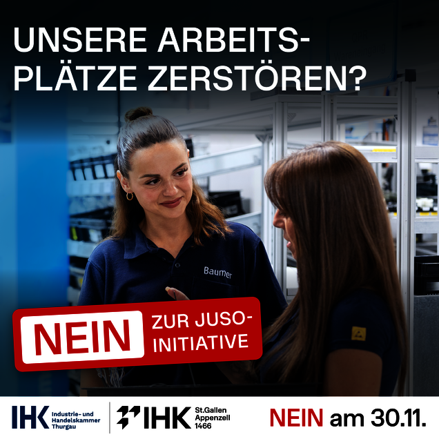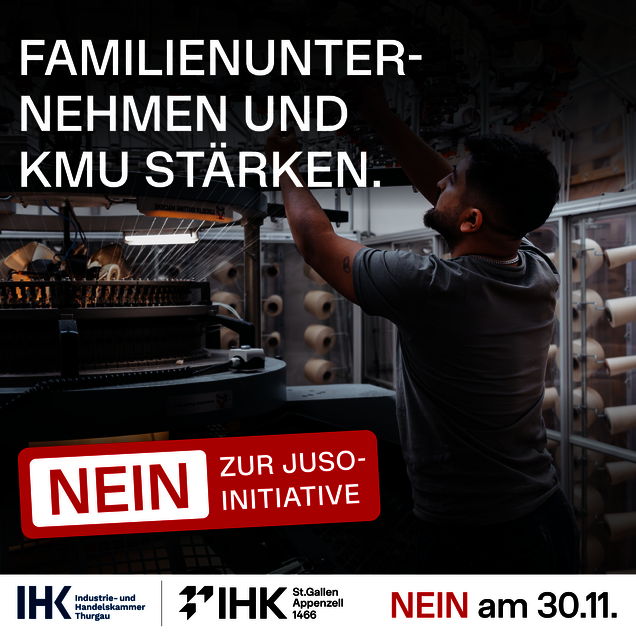 Eine Annahme der JUSO-Initiative am 30. November würde zahlreiche Schweizer Familienunternehmen in ihrer Existenz gefährden. Die Konsequenz wäre der Wegzug von Firmen, ein Verlust an Arbeitsplätzen und entgangene Steuereinnahmen von schätzungsweise 2.8 bis 3.7 Milliarden Franken pro Jahr. Die Industrie- und Handelskammern (IHK) St.Gallen-Appenzell und Thurgau engagieren sich mit einer eigenen Abstimmungskampagne gemeinsam mit regionalen Unternehmen gegen die Initiative, deren Annahme dem Werkplatz Schweiz nachhaltig Schaden zufügen würde.